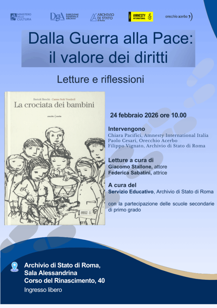L’evento, a cura del Servizio Educativo dell’Archivio di Stato di Roma, coinvolge anche scuole secondarie di primo grado ed è a ingresso libero.