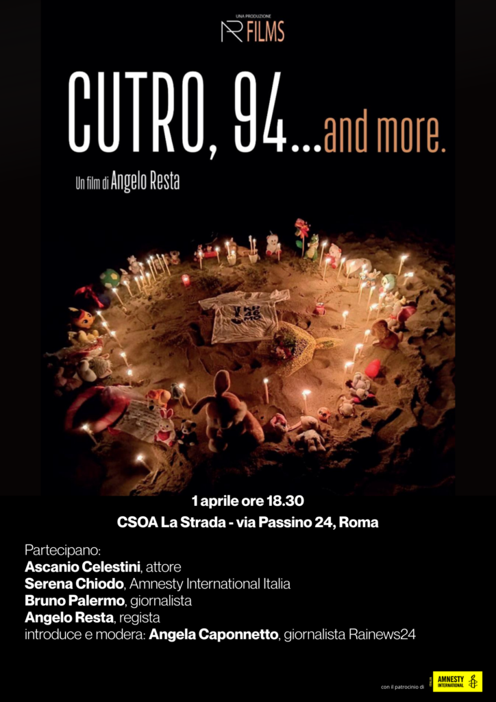 Il documentario “Cutro, 94… and more” di Angelo Resta ricostruisce una delle più gravi tragedie migratorie della storia recente italiana, avvenuta il 26 febbraio 2023 quando il caicco “Summer Love” si infrange in una secca a pochi metri dalla spiaggia di Steccato di Cutro, naufragando, e 94 persone, di cui 35 bambini, persero la vita.
