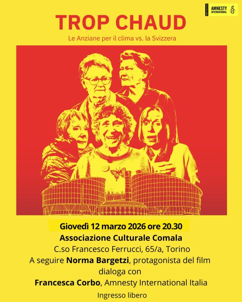 Oggi le Anziane per il clima contano oltre 3 mila membri: tra loro c’è Norma Bargetzi, psicanalista tra le fondatrici del movimento, che sarà ospite della serata e dialogherà con Francesca Corbo di Amnesty International Italia.